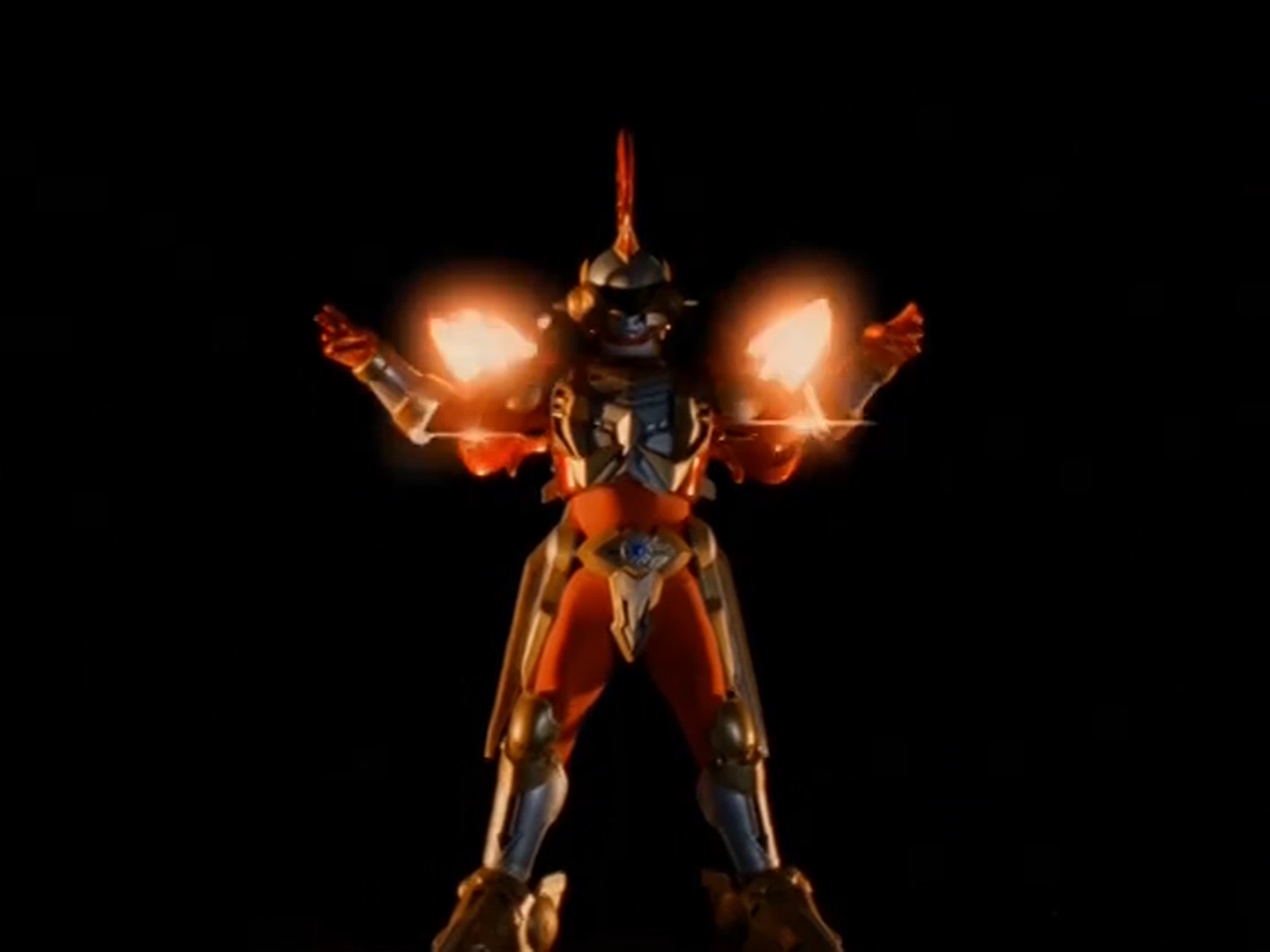 Grâce au Feu Tout Puissant, le Ranger Rouge peut faire appel à l'armure du Chevalier Blanc pour devenir le Guerrier Rouge.