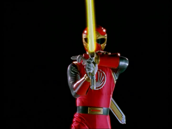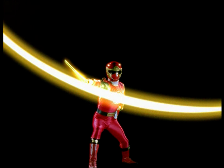 Grâce à son Epée Ninja d'Or, le Ranger Cyclone Rouge peut déclencher une attaque Pouvoir Maximum.