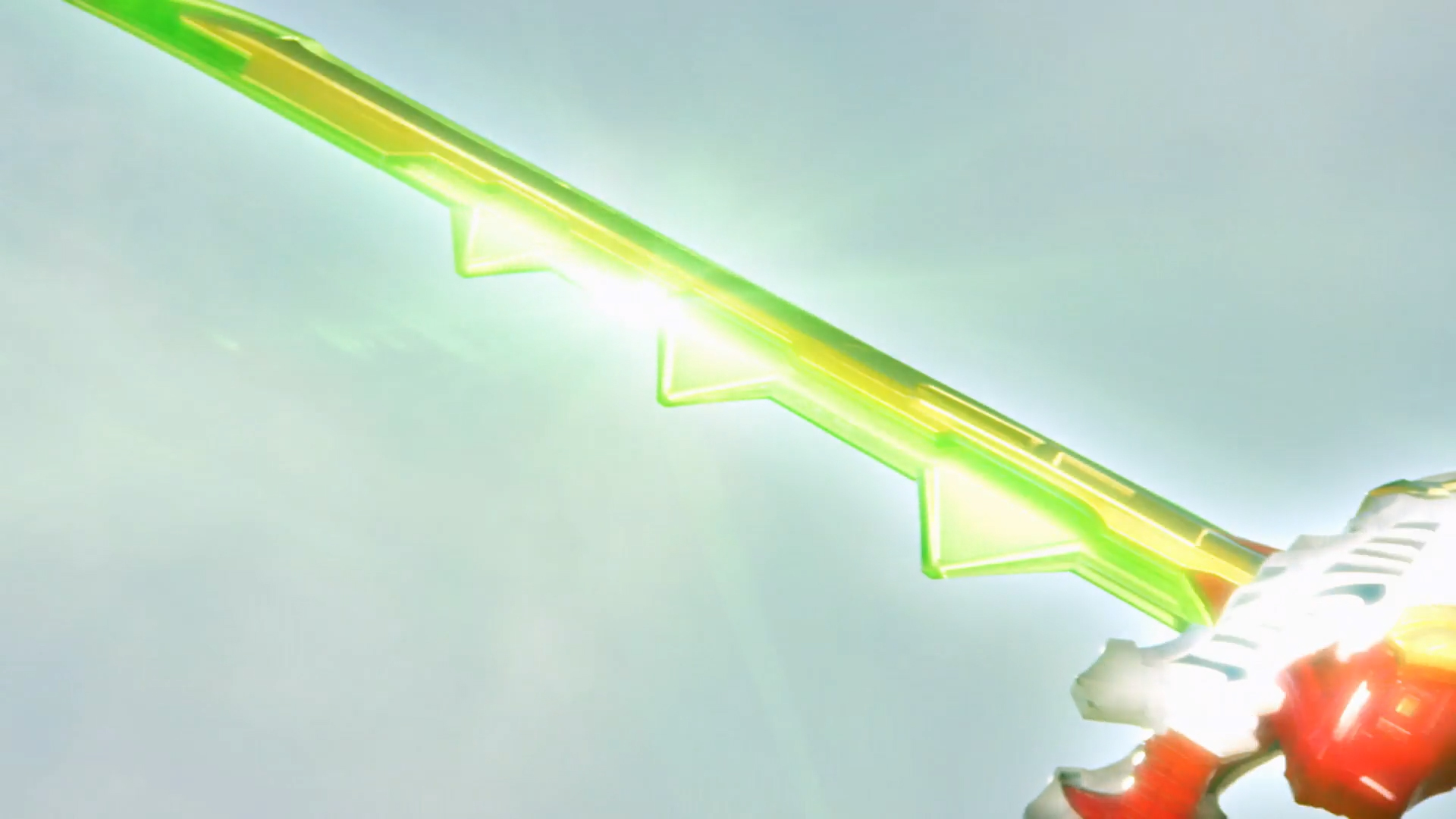 L'Attaque Ultime du Sabre Dino Légendaire fait appel aux pouvoirs de tous les Zords.