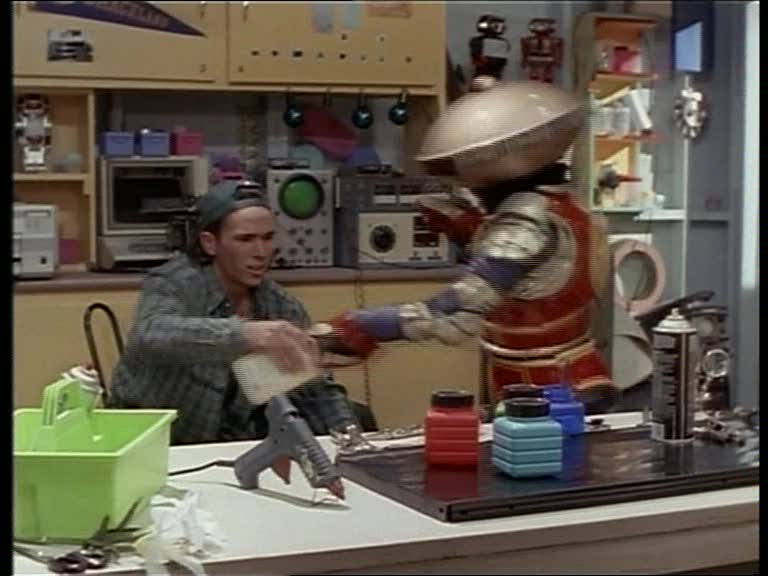 Tommy demande l'aide d'Alpha pour finir un projet au garage. Malheureusement, le robot, qui n'y connait pas grand chose, se trompe dans tous les outils et se colle le flacon de glue à la main.