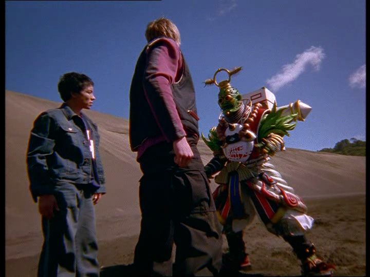 Finalement, il débarque en plein milieu du combat et utilise la coquille du monstre pour contrôler les Megazords et faire disparaître les deux équipes de Rangers, laissant les Megazords vides.