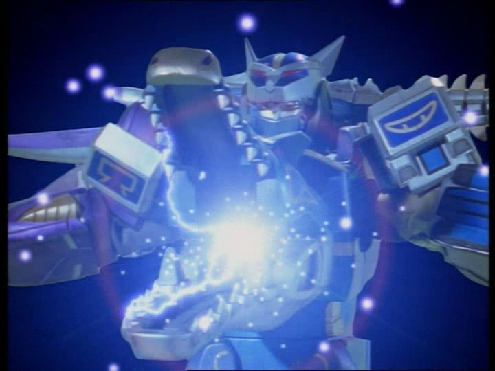 Avec le pouvoir de Zords Animaux des Rangers, le Predazord passe en Lune Bleue, une configuration plus puissante.