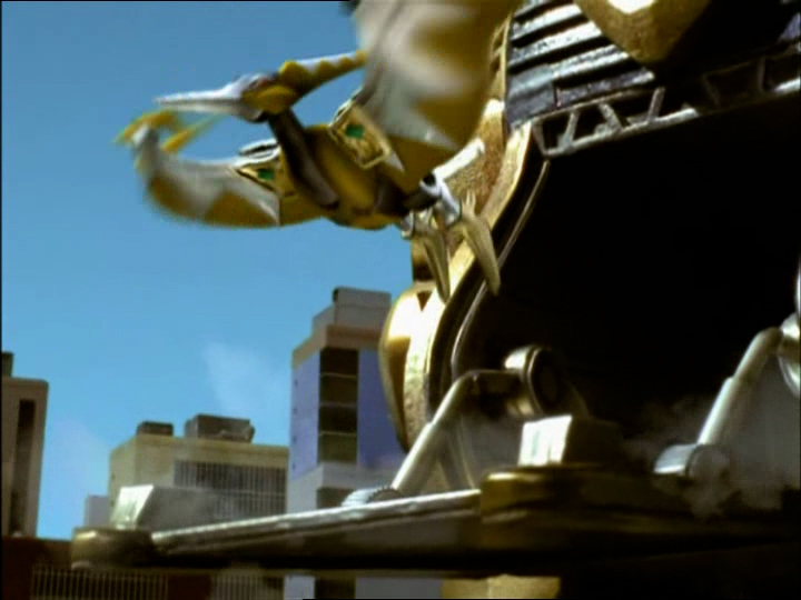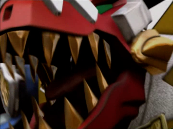 Les trois Dino Zords principaux : le Tyranno, le Tricéra et le Ptéra peuvent s'assembler pour former le tout puissant Megazord Dino Tonnerre.